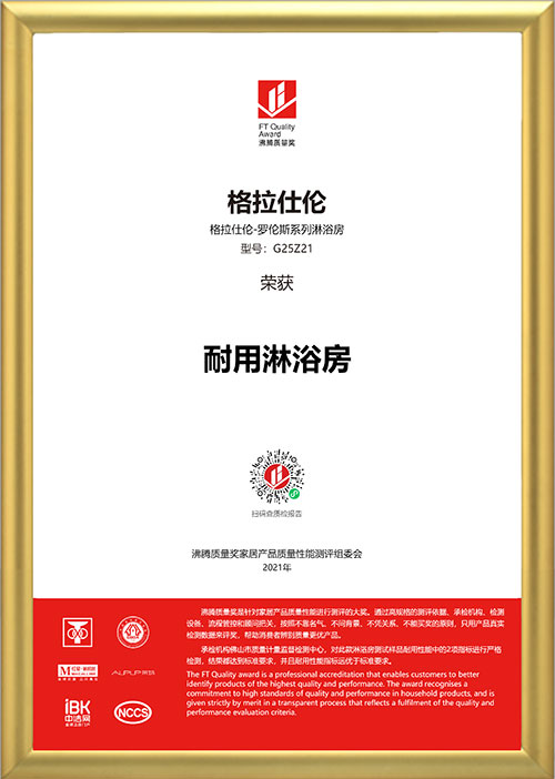 公司“格拉仕倫”品牌淋浴房獲得“沸騰質(zhì)量獎”。